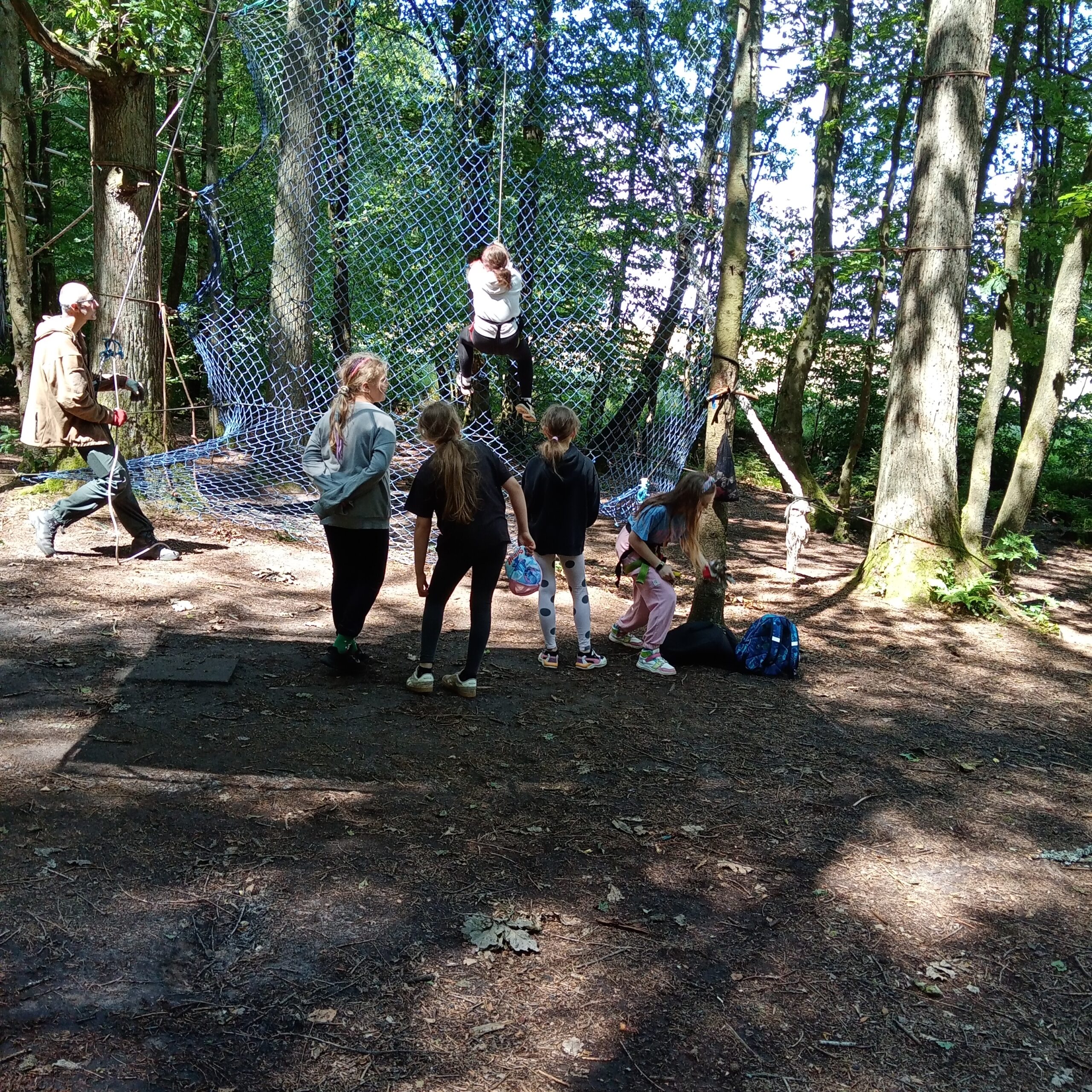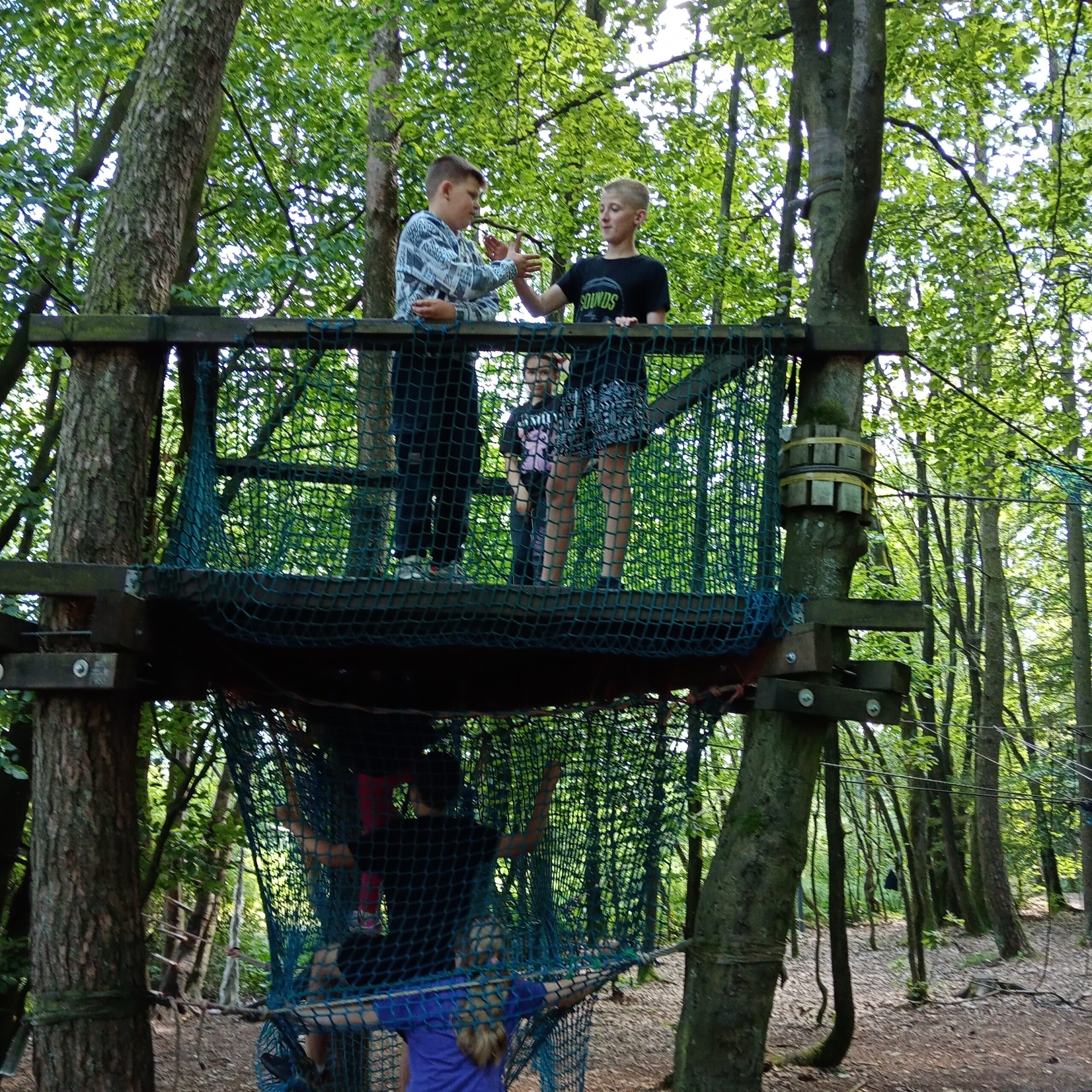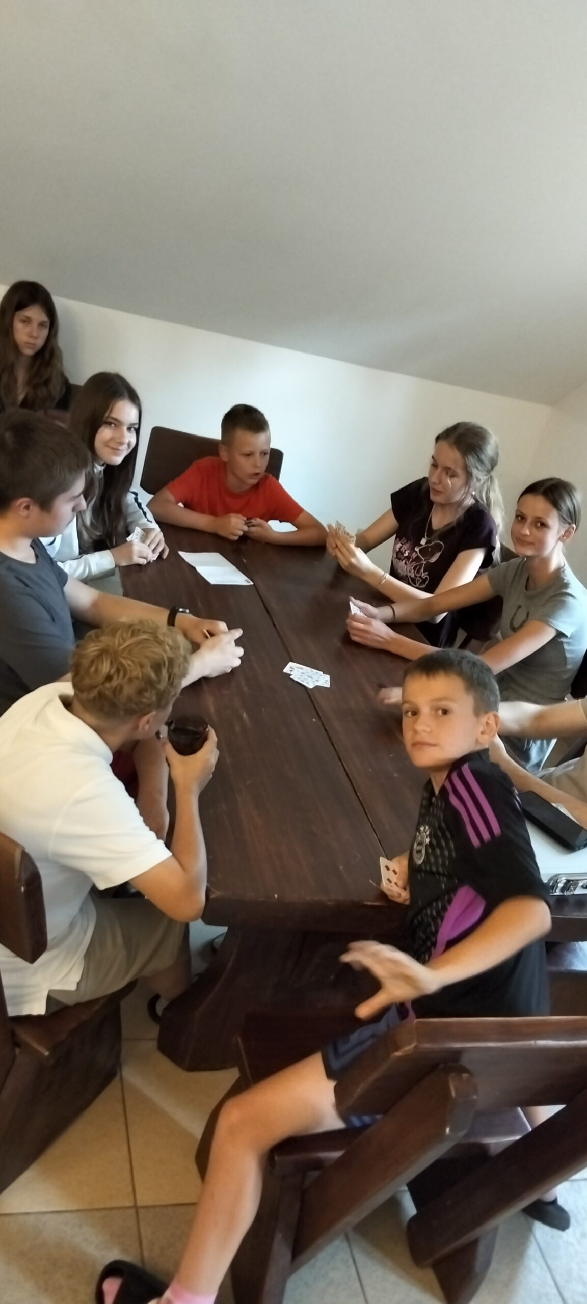 Nie lada atrakcję były zajęcia przyrodnicze połączone z elementami survivalu, które odbywały się na terenie ośrodka i w pobliskich lasach, a które prowadzili instruktorzy z firmy „Propro” p. Mateusza Apanasewicza. Budowanie tratwy, zjazd na tyrolce czy opowieści przy ognisku– to tylko niektóre z niesamowitych aktywności, których doświadczyli uczestniczki i uczestnicy wypoczynku. Oczywiście najciekawsze były nocne eskapady! Nie zabrakło również czasu na integrację, rozgrywki w piłkarzyki, tenis stołowy oraz bilard, a także grę w piłkę oraz jazda na gokartach. Nie zapominano o wspólnej modlitwie każdego dnia i udziale w Eucharystii w pobliskim kościele. Pieczę nad grupą wspólnie z opiekunami sprawował ks. Sebastian Woźniak – wikariusz parafii pw. św. Jakuba Apostoła w Tucholi.
